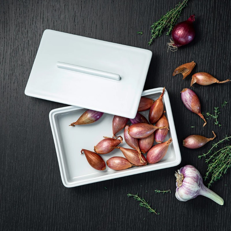 Pour le rangement sécurisé de vos provisions de cuisine, bulthaup a développé un plat en porcelaine blanche avec un couvercle, offrant une protection aux aliments contre de nombreuses influences néfastes avec une élégance simple et minimaliste.