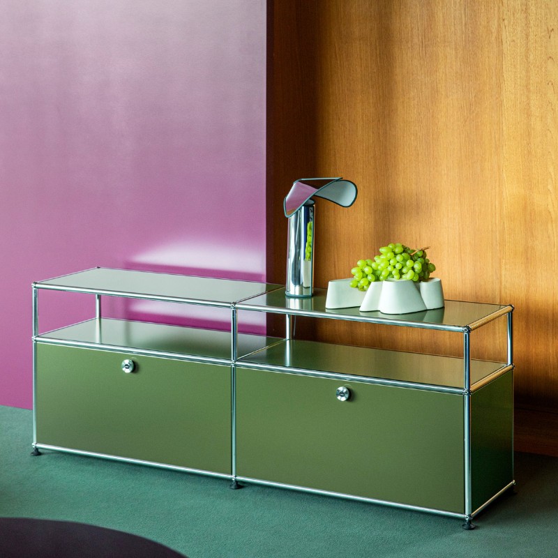 Meuble multimédia USM Haller vert olive
