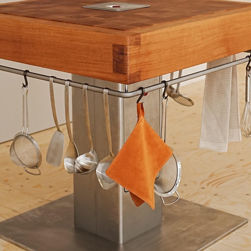 Découvrez les maniques en cuir Bulthaup, un accessoire indispensable pour les passionnés de cuisine recherchant qualité et élégance. Fabriquées à partir des meilleures peaux de bovin, transformées en daim souple et doux, ces maniques allient confort et performance. Conçues avec deux couches de cuir mobiles pour une isolation thermique supérieure, elles garantissent une protection optimale contre la chaleur. Chaque détail, des coutures renforcées jusque dans les coins, témoigne d’une perfection artisanale et d’une durabilité exceptionnelle. Laissez-vous séduire par un design où fonctionnalité rime avec sophistication.