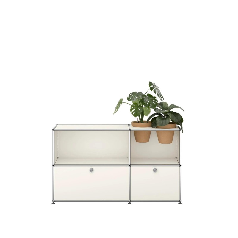 Ce meuble de rangement USM Haller est fourni avec 2 pots* pour vos plantes d’intérieur, ainsi qu’un kit d’arrosage par pot. Le kit garantit un arrosage régulier de vos plantes. Les plantes et le substrat ne sont pas fournis. Avec deux portes abattantes.