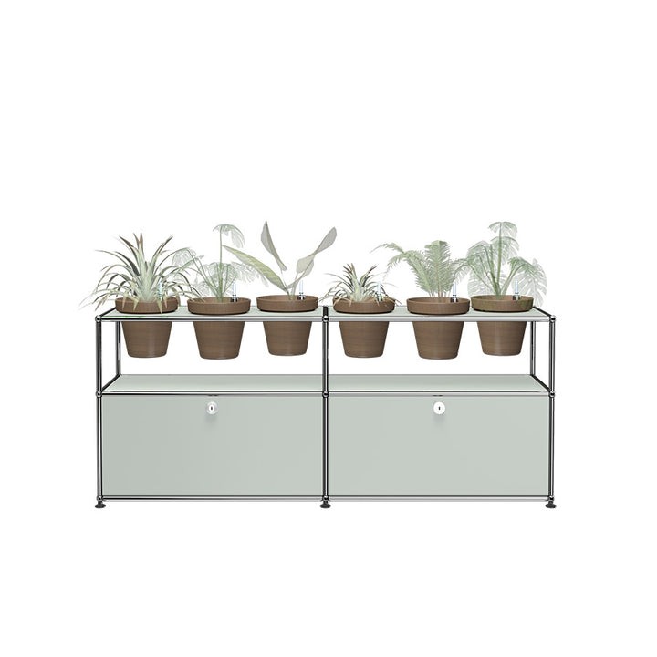 Bien plus qu’un système de rangement, ce meuble USM Haller est un classique du design qui intègre des accessoires pour plantes vous permettant de créer une oasis de verdure chez vous. Ce meuble de rangement USM Haller est fourni avec 6 pots* pour vos plantes d’intérieur, ainsi qu’un kit d’arrosage par pot. Le kit garantit un arrosage régulier de vos plantes. Les plantes et le substrat ne sont pas fournis. Avec deux portes abattantes.
