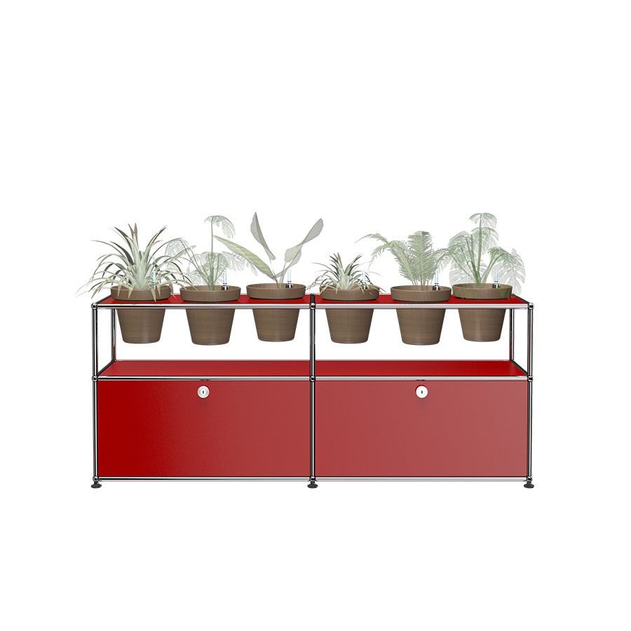 Bien plus qu’un système de rangement, ce meuble USM Haller est un classique du design qui intègre des accessoires pour plantes vous permettant de créer une oasis de verdure chez vous. Ce meuble de rangement USM Haller est fourni avec 6 pots* pour vos plantes d’intérieur, ainsi qu’un kit d’arrosage par pot. Le kit garantit un arrosage régulier de vos plantes. Les plantes et le substrat ne sont pas fournis. Avec deux portes abattantes.