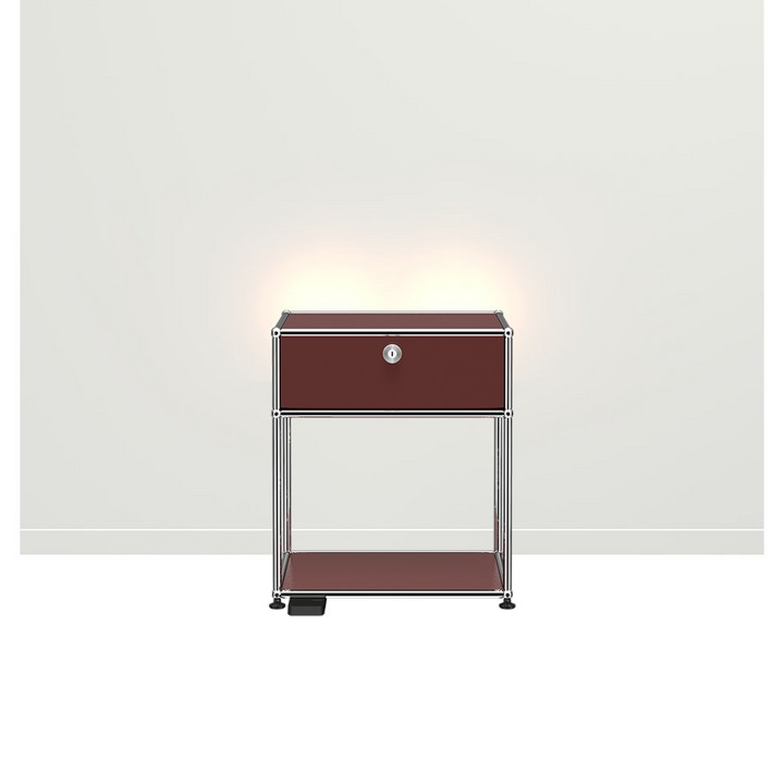 Le nouveau système d’alimentation et d’éclairage intégré USM Haller E révèle les meubles sous un nouveau jour ! Révolutionnaire, l’alimentation est entièrement sans fil. L’électricité est transportée jusqu’aux emplacements souhaités via la structure portante du meuble.