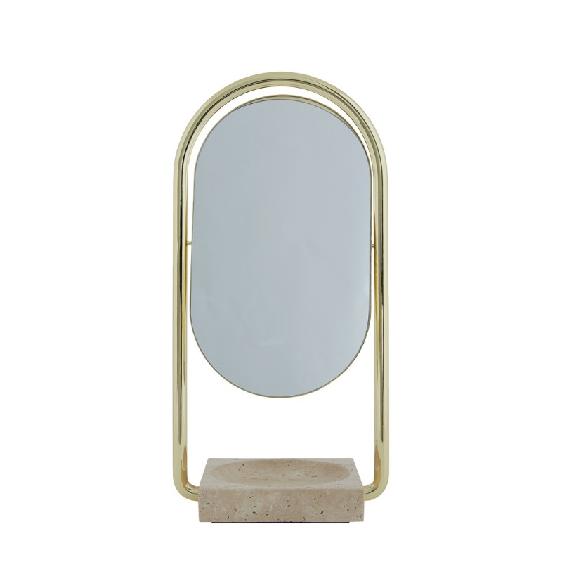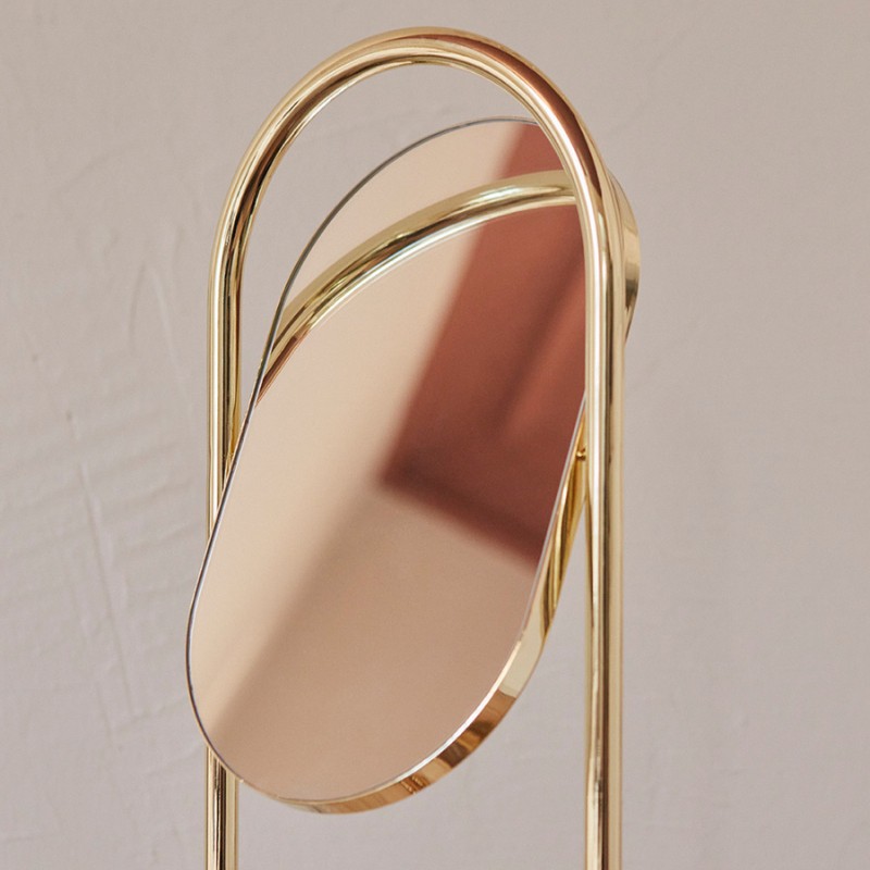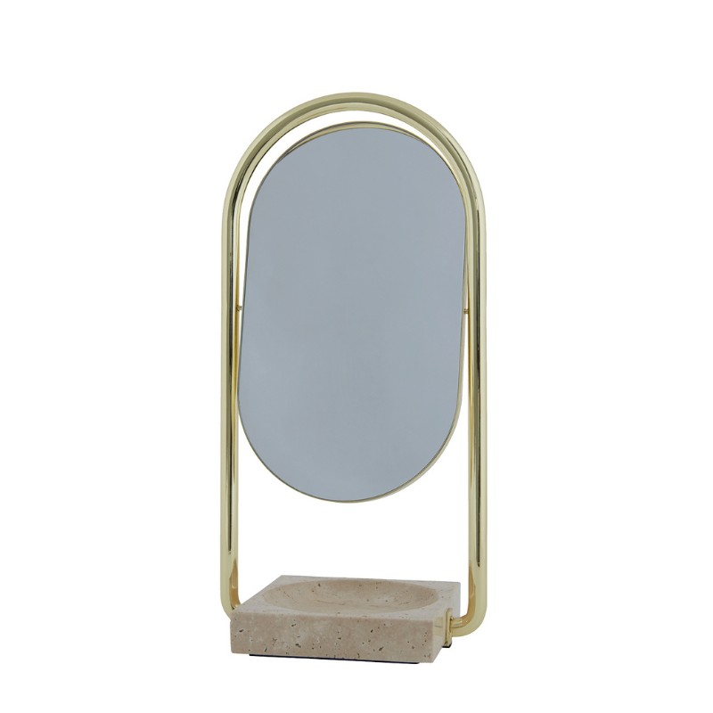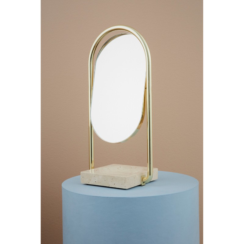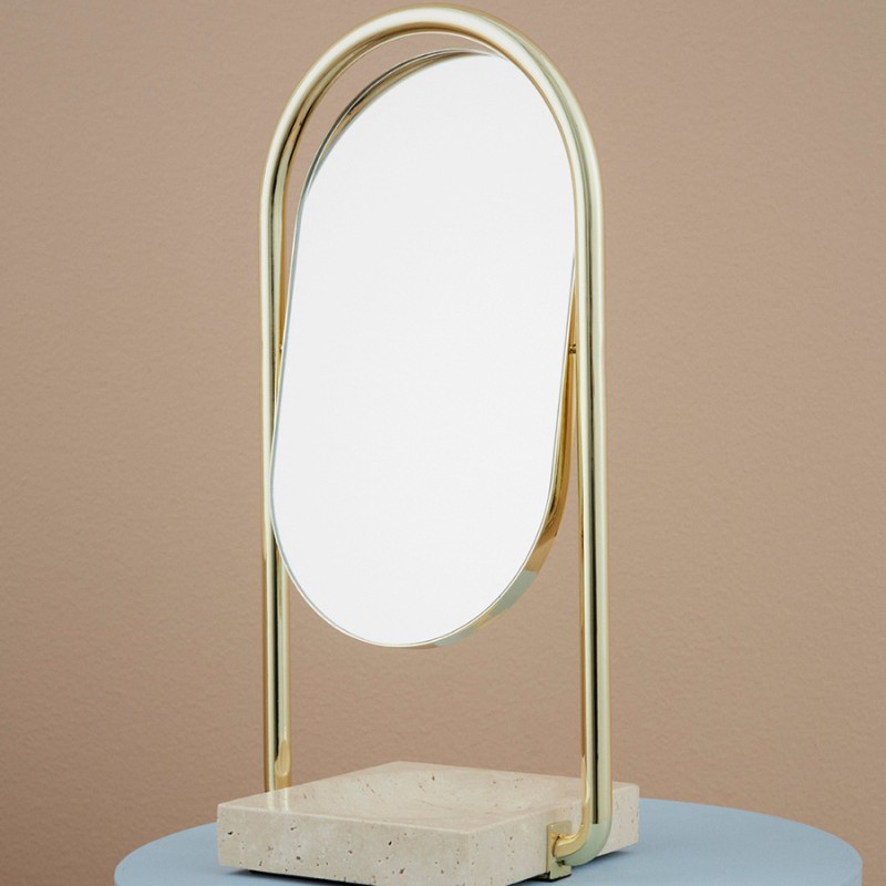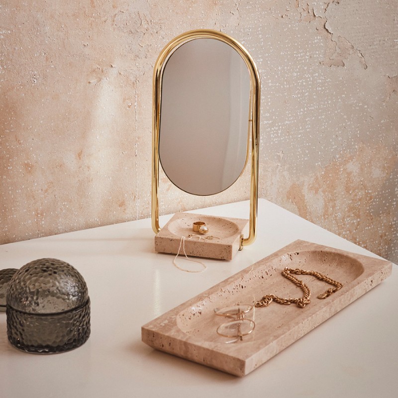 Laissez les courbes douces d'ANGUI envelopper et dominer votre espace. La forme d'ANGUI est créée pour expérimenter de manière ludique les mouvements organiques et gracieux d'un serpent. Vous pouvez facilement placer le miroir de table ANGUI sur la table de votre chambre, sur votre support de salle de bain ou même comme reflet supplémentaire pour votre coiffeuse. Le miroir de table élégant et fonctionnel est double face et peut facilement être tourné vers la loupe 1:3 à l'arrière, qui est le reflet idéal pour vous maquiller au quotidien. Le bas du miroir de table est conçu avec une douille incurvée pour le rangement de vos bagues et autres bijoux préférés.