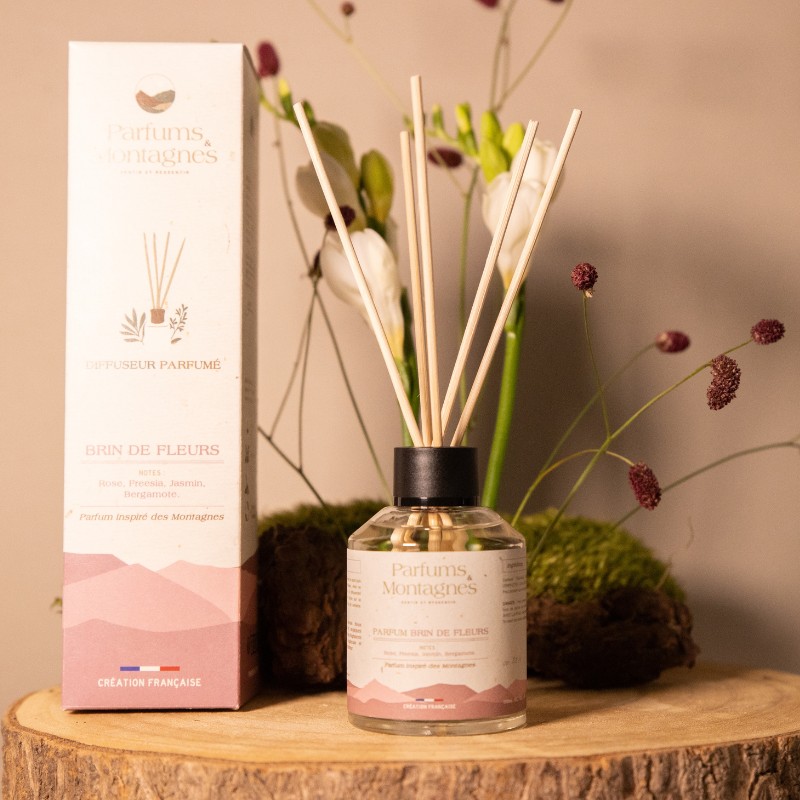 Ce diffuseur parfumé Brin de Fleurs amènera le printemps dans votre maison, un peu de freesia, rose, jasmin et violette. Ce parfum d'ambiance composé de fleurs onctueuses et généreuses saura enivrer vos sens, et sans retenue, faites à la vie un pied de nez parfumé.