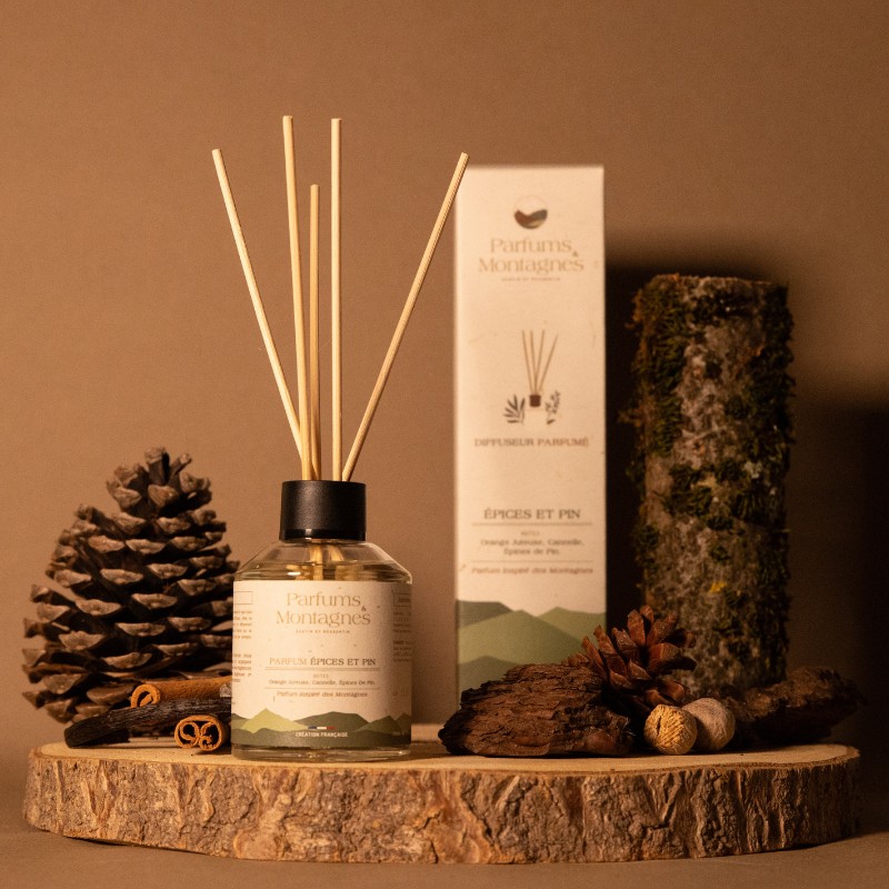 Les bâtonnets de rotin de ce diffuseur vous délivreront de plaisantes fragrances, vous rappelant l'ambiance chaleureuse d'un chalet dans lequel crépite le feu de cheminée. Ajoutez à cela les gourmandes notes épices de bergamote, cannelle, cardamome, vanille, orange... Et voilà l'alchimie idéale pour patienter jusqu'à l'arrivée des fêtes de Noël.