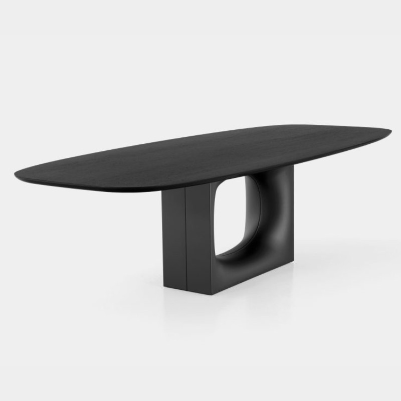 La table Holo est le fruit d'une collaboration innovante entre la technologie de pointe de Kristalia et la créativité de l'illustre designer Kensaku Oshiro. Conçue en 2016, cette pièce se distingue par son piètement unique en métal, doté d'une ouverture ovale aux contours délicatement sculptés. Le processus de fabrication de ce piètement requiert une précision remarquable, avec de nombreuses étapes de moulage et de pliage pour obtenir cette forme singulière.