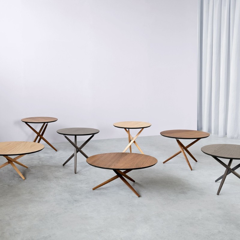 Les formes géométriques jouent avec l’espace en mouvement, accueillent, se font écho entre elles et interagissent avec ce qui les entoure. Le triangle soutient le cercle grâce à l’élégant croisement des pieds donnant une unité harmonieuse à l’ensemble des petites tables Pico.